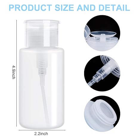 - Portable and Special Design: 2PCS 180ml NXJ INFILILA pump dispenser empty bottles, moderate capacity. The size is convenient for travel, business trip, etc. The Acetone Pump Dispenser is designed to extend the internal tube to the bottom of the bottle to ensure that every drop of liquid is taken out without waste.