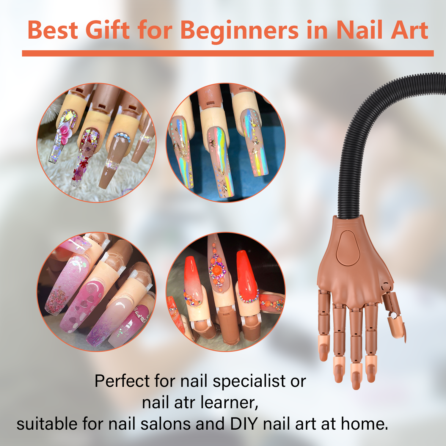[UPGRAD VERSION]:We have improved the nails and fingers, they don't fall off easily from the nail practice hands because this hand has longer nail tips which will be more grooves to fit your nail training hand fingers tightly. If the detachable nails come off easily, try removing the silicone part around the fingers or trimming it, you can also use glue for it