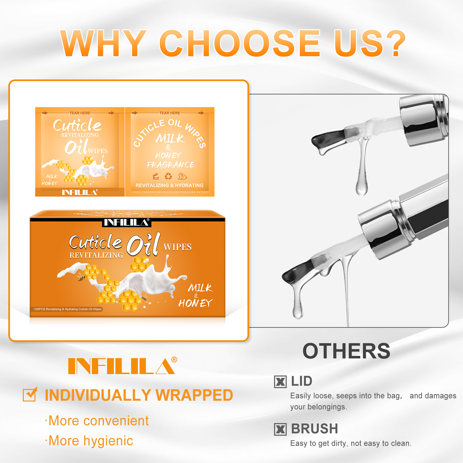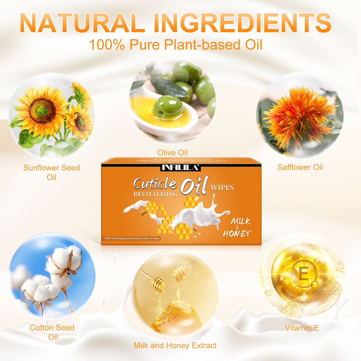 - Natural Ingredients: NXJ INFILILA moisturizing oil pads are blended from high-quality natural sunflower seed oil, safflower oil, cotton seed oil olive oil, and vitamin e, we only use natural and cleanly formulated ingredients for our petroleum-free cuticle oil
